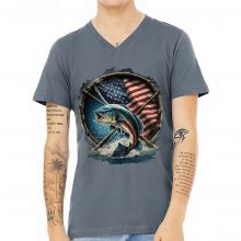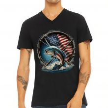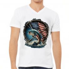 Flag Behind Bass Fishing V-Neck T-Shirt