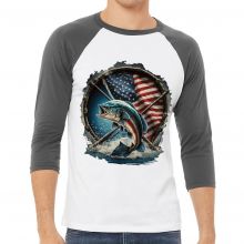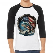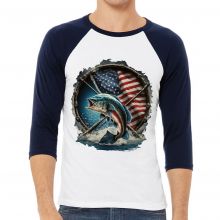 Use our battle tested marketing materials for Flag Behind Bass Fishing Baseball T-Shirt - Patriotic T-Shirt - Cool Baseball Tee