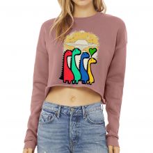 Use our battle tested marketing materials for Cute Dinosaur Cropped Sweatshirt - Cartoon Women's Sweatshirt - UFO Crop Crew Sweatshirt