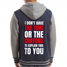 Use our battle tested marketing materials for I Don't Have the Time Or Crayons Varsity Hoodie - Printed Zip Hoodie - Funny Print Hooded Sweatshirt