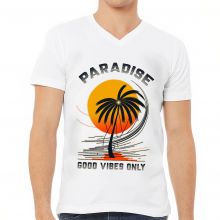 Good Vibes Only V-Neck T-Shirt - Paradise T-Shirt - Palm Tree V-Neck Tee