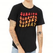 Use our battle tested marketing materials for Sunrise Sunburn Sunset Repeat Curved Hem T-Shirt - Beach T-Shirt - Vacation Curved Hem Tee