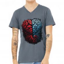 Brain V-Neck T-Shirt - Heart Design T-Shirt - Cute V-Neck Tee