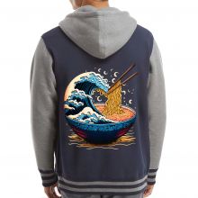 Use our battle tested marketing materials for Great Ramen Wave Varsity Hoodie - Cool Graphic Zip Hoodie - Food Hooded Sweatshirt