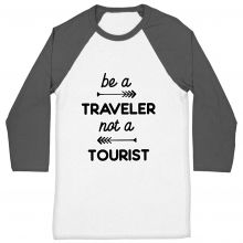 Use our battle tested marketing materials for Be a Traveler Not a Tourist Baseball T-Shirt - Cool Design T-Shirt - Unique Baseball Tee