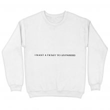 Use our battle tested marketing materials for I Want a Ticket to Anywhere Sweatshirt - Word Design Crewneck Sweatshirt - Printed Sweatshirt