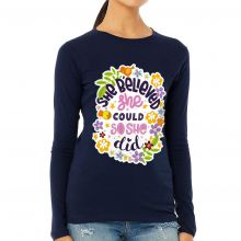 Use our battle tested marketing materials for She Believed She Could So She Did Women's Long Sleeve T-Shirt - Inspirational Long Sleeve Tee - Printed T-Shirt
