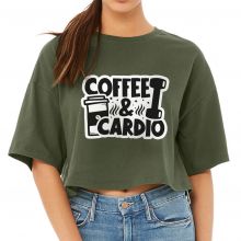 Use our battle tested marketing materials for Coffee and Cardio Women's Crop Tee Shirt - Graphic Cropped T-Shirt - Themed Crop Top