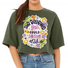 Use our battle tested marketing materials for She Believed She Could So She Did Women's Crop Tee Shirt - Inspirational Cropped T-Shirt - Printed Crop Top