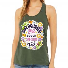 Use our battle tested marketing materials for She Believed She Could So She Did Women's Racerback Tank - Inspirational Tank Top - Printed Workout Tank