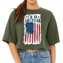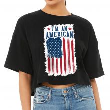 Use our battle tested marketing materials for I am an American Women's Crop Tee Shirt - USA Flag Cropped T-Shirt - Patriotic Crop Top