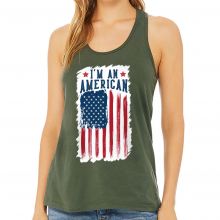 Use our battle tested marketing materials for I am an American Women's Racerback Tank - USA Flag Tank Top - Patriotic Workout Tank