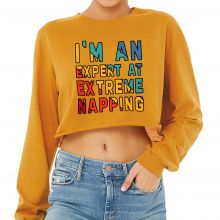 Use our battle tested marketing materials for Napping Cropped Long Sleeve T-Shirt - Funny Women's T-Shirt - Cool Quote Long Sleeve Tee