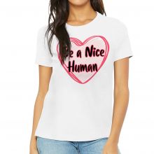 Use our battle tested marketing materials for Be a Nice Human Women's T-Shirt - Heart Print T-Shirt - Graphic Relaxed Tee