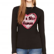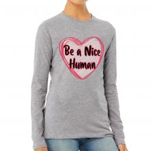 Use our battle tested marketing materials for Be a Nice Human Women's Long Sleeve T-Shirt - Heart Print Long Sleeve Tee - Graphic T-Shirt