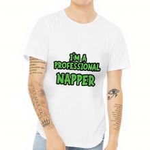 Use our battle tested marketing materials for Professional Napper Curved Hem T-Shirt - Best Print T-Shirt - Cool Curved Hem Tee
