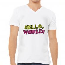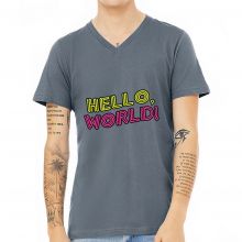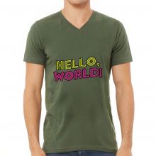 Use our battle tested marketing materials for Hello World V-Neck T-Shirt - Cool Design T-Shirt - Trendy V-Neck Tee