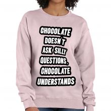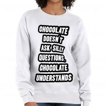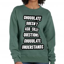 Use our battle tested marketing materials for Chocolate Doesn't Ask Silly Questions Chocolate Understands Crewneck Sweatshirt - Funny Saying Women's Sweatshirt - Graphic Sweatshirt