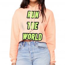 Use our battle tested marketing materials for Run the World Women's Cropped Hoodie - Best Quote Cropped Hoodie - Cool Graphic Hooded Sweatshirt