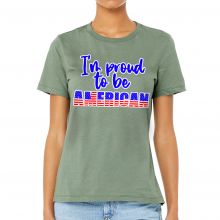 Use our battle tested marketing materials for Proud to Be American Women's T-Shirt - Patriotic T-Shirt - USA Flag Relaxed Tee