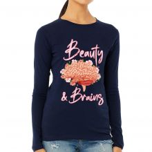 Use our battle tested marketing materials for Beauty and Brains Women's Long Sleeve T-Shirt - Floral Long Sleeve Tee - Illustration T-Shirt