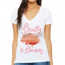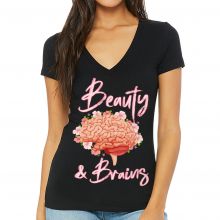 Use our battle tested marketing materials for Beauty and Brains Women's V-Neck T-Shirt - Floral V-Neck Tee - Illustration T-Shirt