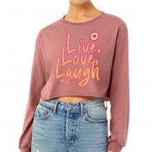 Use our battle tested marketing materials for Live Laugh Love Cropped Long Sleeve T-Shirt - Cute Design Women's T-Shirt - Printed Long Sleeve Tee
