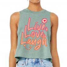 Use our battle tested marketing materials for Live Laugh Love Racerback Cropped Tank - Cute Design Women's Tank - Printed Tank Top