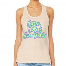 Use our battle tested marketing materials for Cats Coffee Cuss Words Women's Racerback Tank - Funny Tank Top - Trendy Workout Tank