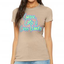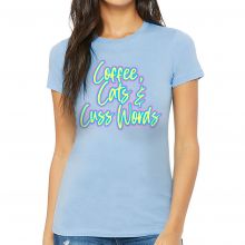 Use our battle tested marketing materials for Cats Coffee Cuss Words Slim Fit T-Shirt - Funny Women's T-Shirt - Trendy Slim Fit Tee