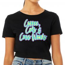 Use our battle tested marketing materials for Cats Coffee Cuss Words Women's Cropped T-Shirt - Funny Crop Top - Trendy Cropped Tee
