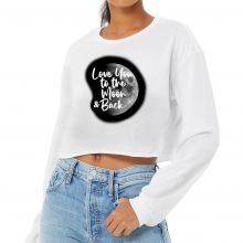 Use our battle tested marketing materials for Love You to the Moon and Back Cropped Long Sleeve T-Shirt - Moon Graphic Women's T-Shirt - Cool Trendy Long Sleeve Tee