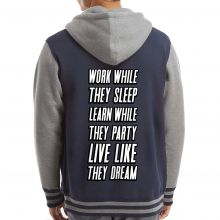 Use our battle tested marketing materials for Motivational Quote Varsity Hoodie - Printed Zip Hoodie - Cool Saying Hooded Sweatshirt