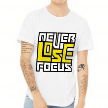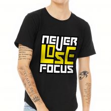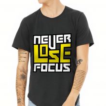 Use our battle tested marketing materials for Never Lose Focus Curved Hem T-Shirt - Inspirational T-Shirt - Printed Curved Hem Tee