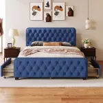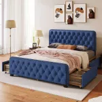 Transform your bedroom into a haven of relaxation and organization with our Elegant Upholstered Platform Bed. Combining modern style with practical functionality, this bed is not just a centerpiece for your bedroom but also a smart storage solution. Its sleek design features a button-tufted headboard and footboard, adding a touch of luxury and sophistication to your space.