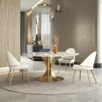 This table shines not only in its fundamental features but also in its ability to enhance the moments that matter. Best used for both daily meals and festive occasions, it turns every gathering into a luxurious banquet. The combination of practicality with the turntable and the unparalleled elegance of the gold stainless steel frame and marble top makes this dining table a unique centerpiece for your home.