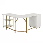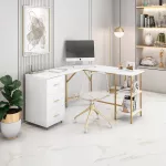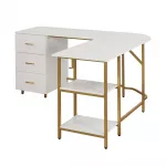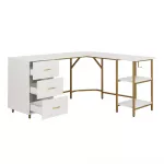 Elevate your home office with our Contemporary L-Shape Home Office Desk, a blend of modern design and unmatched functionality. Designed to create an efficient and aesthetically pleasing work environment, this desk features a heavy-duty steel frame with elegant gold accents, paired with a sleek, engineered white wood tabletop. Its spacious L-shape provides ample room for multitasking, making it the ideal choice for professionals who require a large, organized workspace.