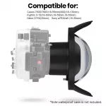 Our dome port is meticulously engineered for universal use, ensuring compatibility with a range of camera models, particularly the Panasonic GH5/GH5S and Sony A7-II/A7R-II/A7S-II series. Its robust construction is designed to withstand the pressures of deep-water exploration, ensuring your camera stays safe and secure up to depths of 40 meters (130 feet). With dimensions of φ 80mm* L 67mm, it's the perfect balance of compact design and wide-angle capability.