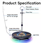- RGB Selfie Ring Light with 3 color modes and 10 adjustable brightness settings.