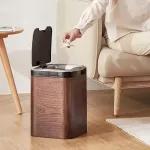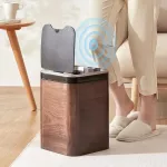This automatic trash can boasts a variety of features designed to simplify your life. It's not a smart device, but its clever inductive opening and closing mechanism means you never have to touch the bin – just a wave of your hand, and it’s open. Coupled with its eco-friendly and stocked attributes, this trash bin is an excellent choice for the environmentally conscious. Its standing structure and touchpad style marry convenience with the sleek aesthetics of its wooden material.