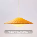 This pendant lamp is more than just a lighting fixture; it's a statement piece that infuses any room with a warm, inviting ambiance. Especially striking in dining areas and living rooms, its handcrafted wicker design offers a cozy, natural feel. Each lamp is distinct, ensuring that your lighting solution is as unique as your space. While it isn't dimmable, it provides a consistent and inviting light, perfect for creating a serene atmosphere.