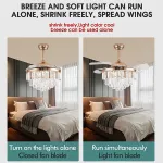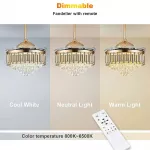 Our ceiling fan chandelier boasts an array of features that set it apart from the rest. With silent motor technology, you'll enjoy the breeze without the noise, even at the highest speed setting. The retractable ABS fan blades tuck away when not in use, maintaining the sleek appearance of the fixture. The included remote control puts full command of the fan's speeds and light settings at your fingertips, making it effortless to create the perfect environment in your space.