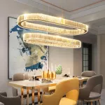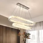 Bring a touch of sophistication to any room with our Contemporary LED Crystal Ceiling Pendant. Designed for modern living, this stylish fixture combines the allure of sparkling crystals with the sleekness of chrome, casting a warm and inviting glow in your dining room, kitchen, or bedroom. Its unique oval ring shape is not just an illumination source, it's a statement piece that complements your home decor.