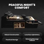 Experience the pinnacle of luxury and functionality with our Luxury King Bed, featuring built-in massage and ample storage. Crafted to provide the perfect blend of comfort, elegance, and convenience, this bed is a must-have for anyone looking to elevate their bedroom experience. Its sleek design and high-quality materials make it a standout piece in any modern bedroom.