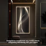 Our wall lamp boasts a sleek aluminum alloy frame encompassing a high-definition spray painted canvas that brings images to life. The A-grade crystal mirror is scratch-resistant and ensures the utmost clarity, while the integrated LED light strip casts a warm, inviting glow. Equipped with a remote control for convenience, the dimmable feature allows you to set the perfect mood for any occasion. This meticulously crafted piece, complete with a DMF environmental protection backplane, seamlessly blends with your decor to create a harmonious look.