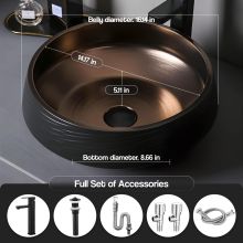 Introducing our Deluxe Black and Bronze Ceramic Bathroom Sink Set, a perfect fusion of luxury and practicality for your home. Crafted from high-quality sanitary porcelain, this sink offers unmatched durability and strength, ensuring a long-lasting addition to your bathroom. The exquisite black finish with bronze accents adds a touch of elegance and sophistication, seamlessly blending with any decor style.
