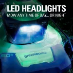 - LED Headlights: Extend your mowing time with bright LED headlights for evening or early morning tasks.