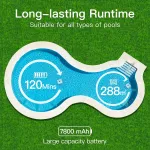 - Powerful 7800mAh rechargeable lithium-ion battery, offering 2 to 2.5 hours of cleaning