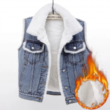 Use our battle tested marketing materials for Velvet-Lined Sleeveless Denim Vest - Women's Plush Winter Streetwear