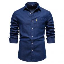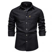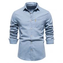 Use our battle tested marketing materials for Men's Autumn Cotton Denim Slim-Fit Casual Shirt - Solid Long Sleeve